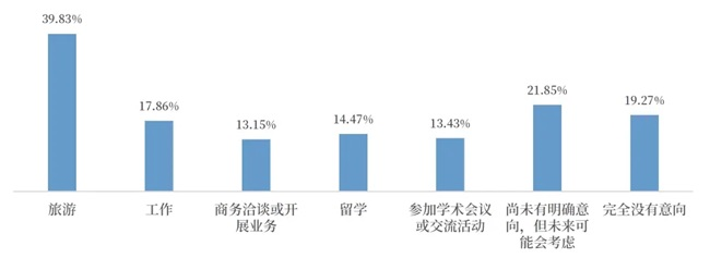 旅游是驱动全球Z世代青年访华的最核心因素。同时,以工作、留学和学术交流为代表的发展性意向也占据重要比例。