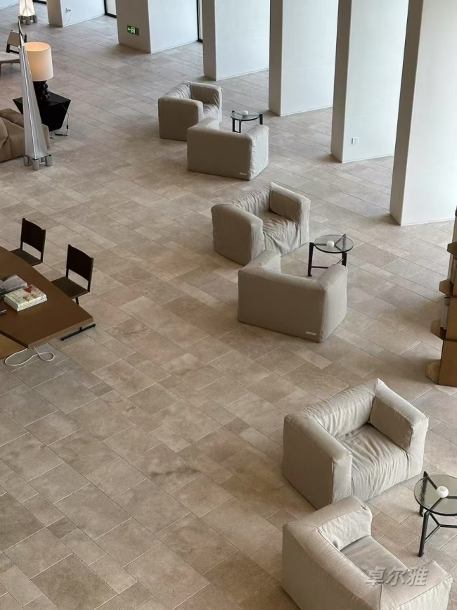 以天然花岗岩小条砖为核心,优势在于硬度高、耐磨性强,适合高频使用的商业地面(如商场、医院)。但缺点也明显:触感冰冷,亲和性不足,安装需专业团队,更适合侧重“耐用性”的工程场景,而非注重“质感”的家居或民宿。