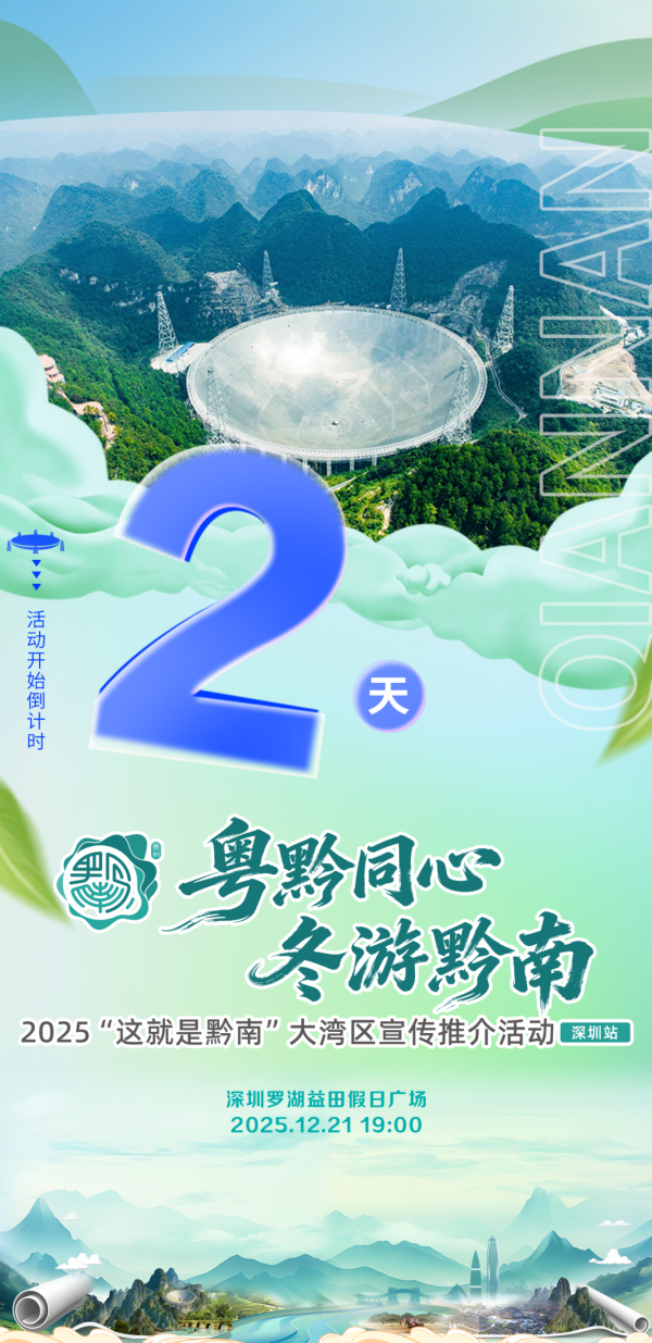 黔南向大湾区朋友发出“邀请函”啦!2025“粤黔同心 携手同行”大湾区宣传推介活动即将走进广州、深圳。12月20日至21日,黔南州将携满满诚意而来,以专场推介、互动体验、路演音乐会等多元形式,展示黔南文化魅力,发布实用的优惠政策与特色线路,向大湾区朋友发出冬游邀约,共赴一场山水与人文交织的冬日盛宴。