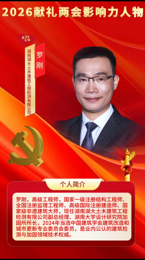 值此全国两会召开之际,罗刚以建筑人的赤诚与担当献礼盛会,立足岗位践行初心,依托专业优势推动建筑检测加固技术迭代、城市更新项目落地,既守护民生安全,又助力中华传统建筑文化活态传承,为推动建筑业高质量发展、建设宜居安全城市、赋能文化强国建设贡献坚实力量,彰显新时代建筑领域权威的责任与风采。