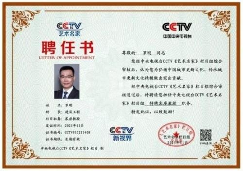 罗刚董事长被中国中央电视台CCTV艺术名家栏目组特聘为客座教授。