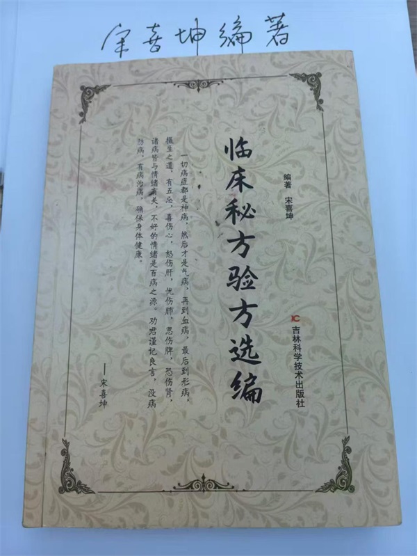 说明:宋喜坤院长编著的《临床秘方验方选编》一书由吉林省科技出版社出版。