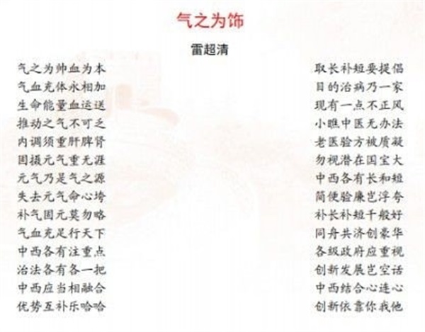 扎根基层临床的岁月里,雷超清见证了太多患者被疑难杂症折磨的痛苦,也目睹了癌症给无数家庭带来的沉重打击。他深知,西医在癌症诊疗中凭借微观技术取得突破,但也存在忽视人体整体性的局限;而中医以整体观与辨证论治为核心,却缺乏对细胞层面的深入阐释。为破解这一困境,他耗时多年钻研中西医融合之道,2018年在《世界肿瘤研究》发表《中西医结合攻克癌症的初步设想——基于微观探讨与宏观认识有机结合的思考》,从细胞结构功能与脏腑关联的角度剖析癌变机理,提出“气虚是癌变之因,固护宗气、中气、真元之气是治癌核心原则”的独到观点,为癌症研究提供了全新思路。此外,他还发表《情志与疾病》《燥音与低热》《元气戕伤与癌变相关性》等十余篇学术论文,撰写《抗癌必读》一书,系统梳理癌症诊疗与养护经验,字里行间皆是他对患者的关怀与对中医事业的深耕。