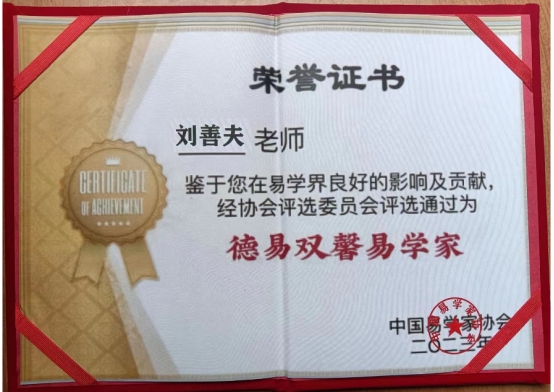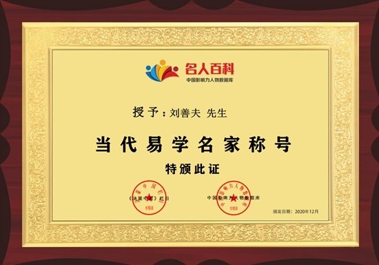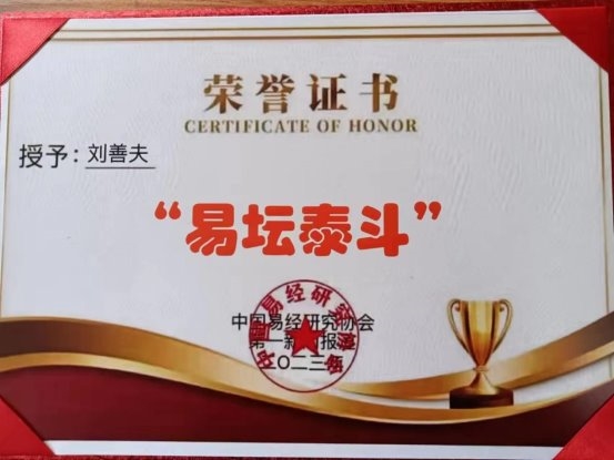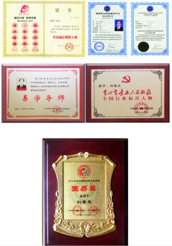 本着弘扬祖国传统文化,传承中华智慧文明,科学研究易学文化,刘善夫成功地打造了优秀的易学文化服务基地----舟山市刘善夫易学文化咨询服务中心。并以科学的预测,正确的决策和优良的服务赢得了社会各界的普遍认可和国家的肯定,先后荣获“中国企业文化品牌贡献单位”、“中国易学行业;全国守信单位”、“中国易学界标志性品牌”、“中国易学行业最具影响力品牌”、“中国易学行业公众满意最佳典范品牌”等荣誉称号,登录《中国城市年鉴》、《中华人民共和国年鉴》、《中国国际经济合作年鉴》、《中华丰碑》等,从而建立了人生事业的丰碑,信誉的大厦。