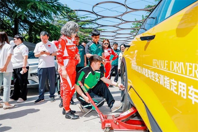 在这里,小李补胎专业技师手把手教学,演示了快速换胎、添加玻璃水、搭电等实用技能,专业讲解赢得在场嘉宾的一致好评。这种“零距离”的互动体验,让许多平时对修车“望而生畏”的女性车主,第一次亲手掌握了车辆基础养护的窍门,真正实现了从“不敢碰”到“我能行”的转变。